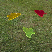 Spannweite 12 cm, Stablänge 80 cm, Farben rot, gelb, grün, azurblau.