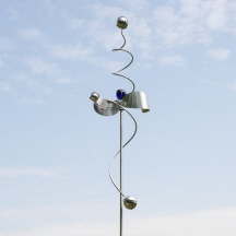 Spiralhöhe 100 cm, Spannweite 35 cm, Stablänge 200 cm. Farbe der Zentralkugel: blau, rot, klar, Edelstahl.